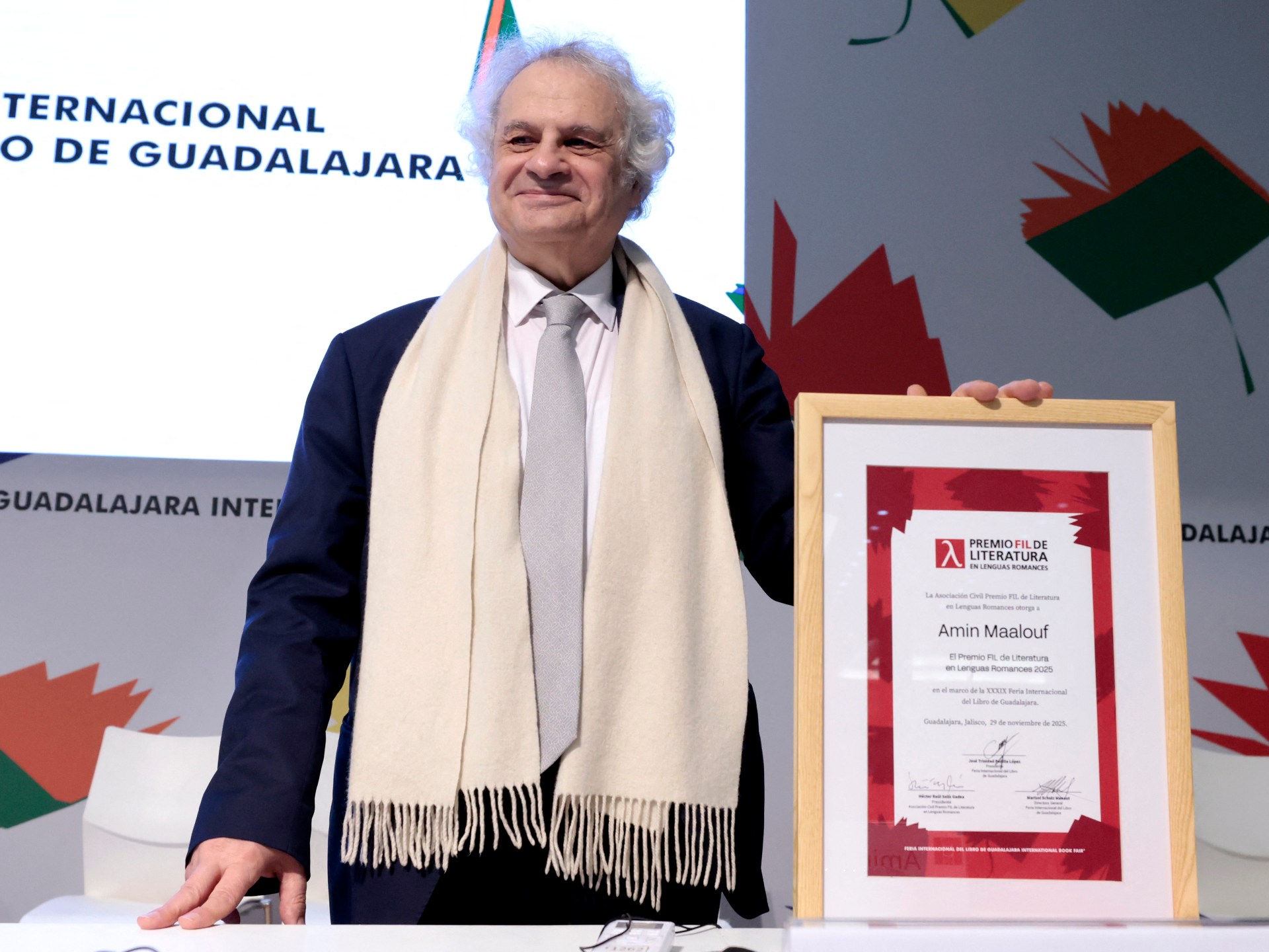 تسلم الكاتب الفرنسي اللبناني، أمين معلوف، جائزة أدب اللغات الرومانسية المرموقة في حفل أقيم بمدينة غوادالاخارا في المكسيك يوم السبت الماضي. تأتي هذه الجائزة تقديرًا لـ “مجموعة أعماله وقدرتها على استكشاف تصدعات العالم الحديث وتهجيناته بوضوح تام” كما أشادت بذلك لجنة التحكيم. الجائزة، التي تُمنح في افتتاح المعرض الدولي للكتاب أحد أهم معارض الكتب الناطقة بالإسبانية، تتضمن مكافأة مالية قيمتها 150 ألف دولار.