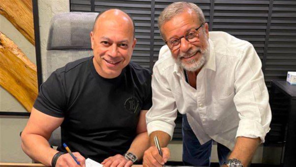 وشوق شريف منير، الجمهور ومتابعيه بصورة من كواليس تعاقده على مسلسله الرمضاني الجديد رفقة المنتج تامر مرسي، مؤكدًا أن العمل سيشهد العديد من المفاجآت.