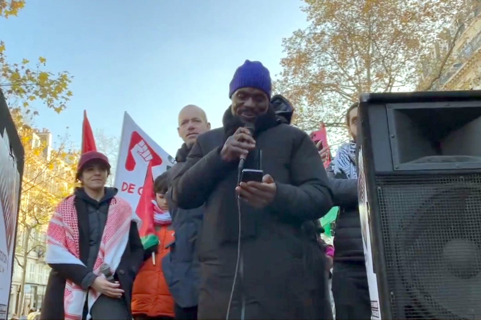 فاجأ مغني الراب الفرنسي، كيري جيمس، المشاركين في مسيرة داعمة لفلسطين، في العاصمة الفرنسية باريس، أمس السبت، بأداء أغنية منددة بجرائم الاحتلال الإسرائيلي في قطاع غزة.