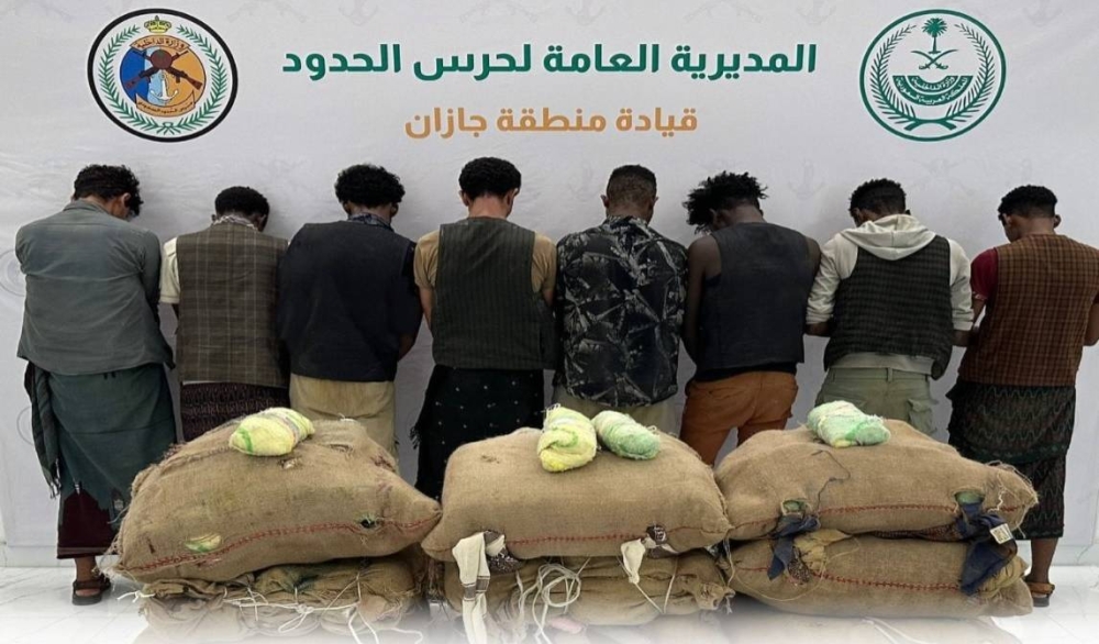 قبضت الدوريات البرية لحرس الحدود في قطاع الدائر بمنطقة جازان على (8) مخالفين لنظام أمن الحدود من الجنسية الإثيوبية، لتهريبهم (180) كيلوجرامًا من نبات القات المخدر، وجرى استكمال الإجراءات النظامية الأولية بحقهم، وتسليمهم والمضبوطات لجهة الاختصاص.