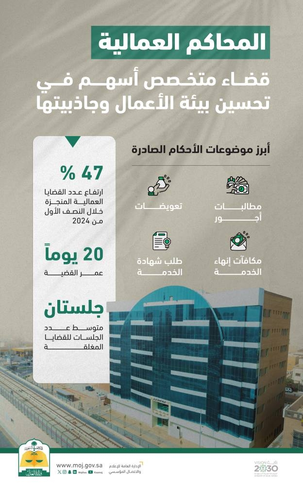 على مدار السنوات الماضية، استطاع القضاء العمالي أن يواكب التطورات الكبيرة والنقلات النوعية التي يشهدها سوق العمل السعودي من خلال سرعة الفصل في المنازعات، وحماية حقوق العمال وأصحاب العمل على حد سواء.