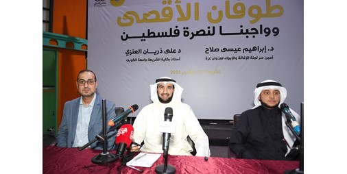 طالب المتحدثون في ندوة «طوفان الأقصى وواجبنا لنصرة فلسطين» بضرورة استمرار مساندة الشعب الفلسطيني ودعم صموده في وجه العدوان الصهيوني، مثمنين الموقف المشرف للكويت من القضية الفلسطينية ودعمها في المحافل الدولية.