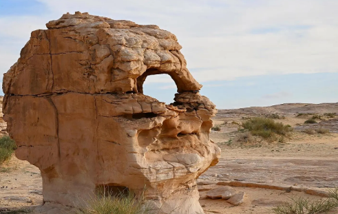 ويتوسط تلك المناطق الصحراوية صخرة على هيئة “جُمجُمة”، وهي عبارة عن صخور رملية رسوبية بطول يقارب المترين، وقد يرجع تكَّون مثل هذه الأشكال الصخرية المميزة، بفعل عوامل التعرية الجوية التي فككت هذه الصخور وشكلتها بأحجام وأشكال مختلفة.