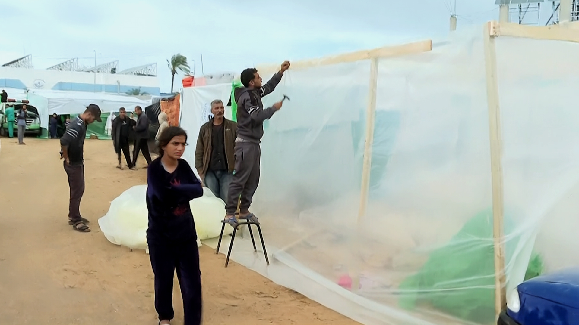 جاءت الأمطار التي هطلت على قطاع غزة لتزيد من معاناة النازحين في دير البلح، حيث اقتلعت الرياح خيامهم التي بالكاد تقوى على حمايتهم من الأمطار.