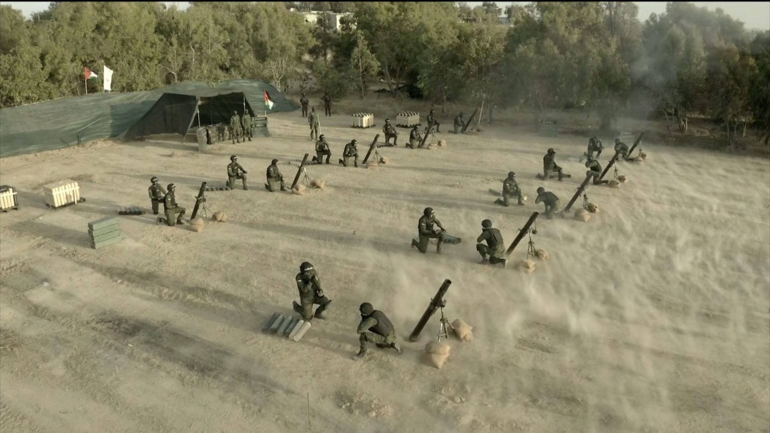وبدأ المقطع بإظهار استعداد مقاتلي “القسام” لتجهيز منصات إطلاق قذائف الهاون، وصولا إلى لحظة إطلاق القذائف بصورة متتالية.
