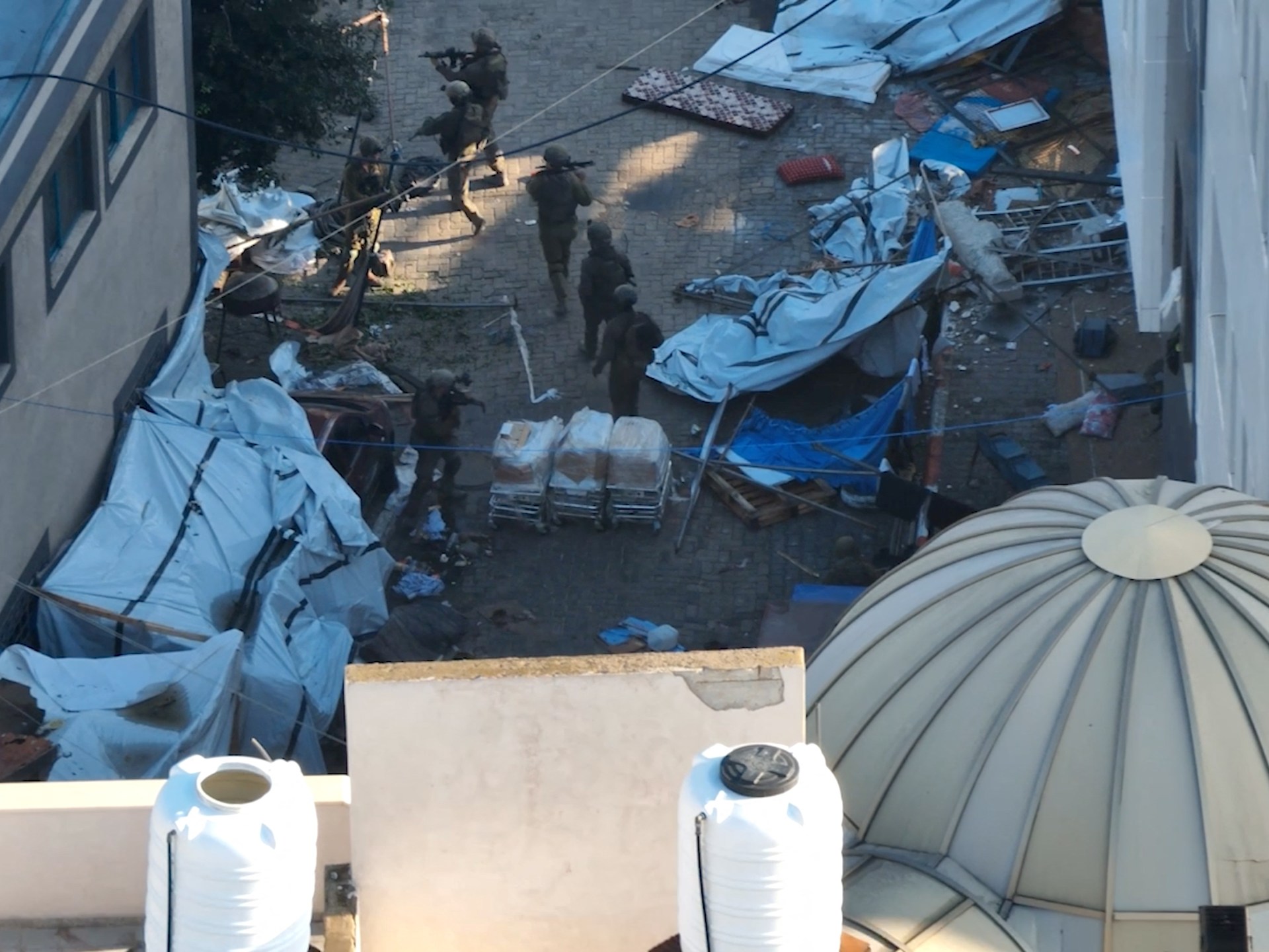 وفي وقت سابق، قال المدير العام للمستشفيات في قطاع غزة الدكتور محمد زقوت للجزيرة، إن قوات الاحتلال اقتحمت مبنيي الجراحات والطوارئ بمجمع الشفاء، وفتشت مستودع المبنى الرئيسي في المجمع.