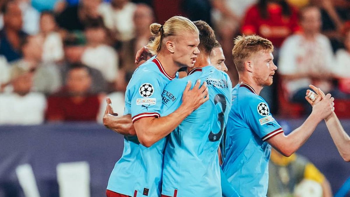 وعلى ملعب (الاتحاد) معقل الفريق السماوي، تقدم مانشستر سيتي عن طريق فيل فودين في الدقيقة (22)، وأضاف زميله النرويجي إرلينج هالاند الهدف الثاني في الدقيقة (29)، وعاد فودين لهز الشباك من جديد، بعدما أضاف الهدف الثالث لمانشستر سيتي وهدفه الشخصي الثاني في الدقيقة (57)، فيما أحرز فالديمار أنتون هدفًا لدورتموند في الدقيقة (72)، واختتم البديل الفرنسي ريان شرقي مهرجان أهداف سيتي في الدقيقة الثانية من الوقت المحتسب بدلًا من الضائع للشوط الثاني.