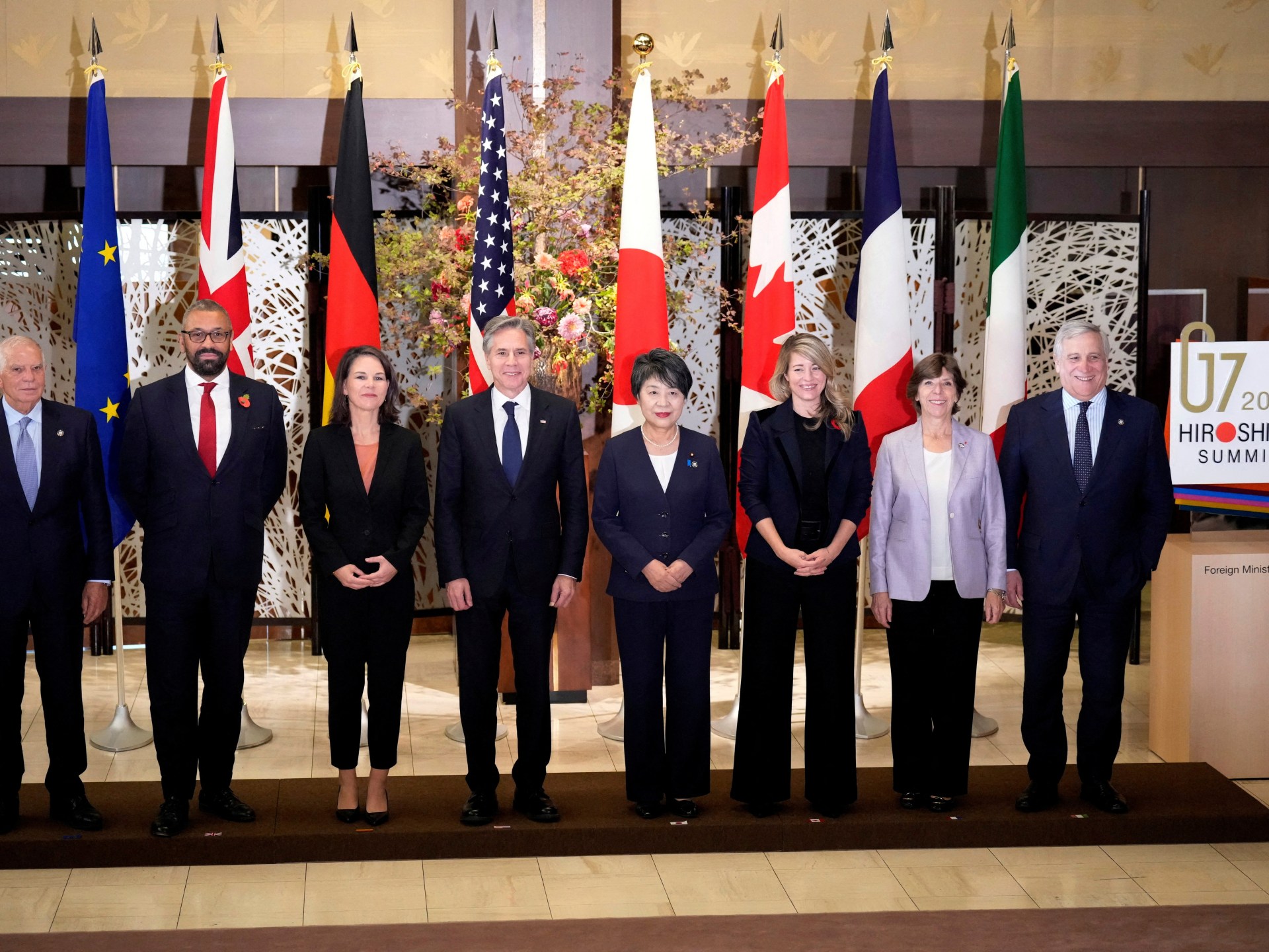 أيد وزراء خارجية مجموعة السبع تمديد الهدنة الحالية وهدنا مستقبلية بين إسرائيل وحركة المقاومة الإسلامية (حماس) في قطاع غزة لزيادة المساعدات وتسهيل إطلاق سراح الأسرى من الجانبين، داعين جماعة الحوثي اليمنية إلى التوقف عن تهديد النقل البحري والإفراج عن طاقم سفينة شحن استولوا عليها في البحر الأحمر قبل 10 أيام.