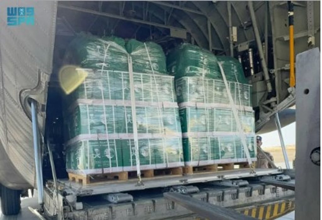 وصلت إلى مطار العريش الدولي بجمهورية مصر العربية أمس، الطائرة الإغاثية السعودية الـ67 التي يسيّرها مركز الملك سلمان للإغاثة والأعمال الإنسانية بالتنسيق مع وزارة الدفاع وسفارة المملكة العربية السعودية في القاهرة، تحمل على متنها سلالًا غذائية وحقائب إيوائية، تمهيدًا لنقلها إلى المتضررين من الشعب الفلسطيني الشقيق داخل قطاع غزة.