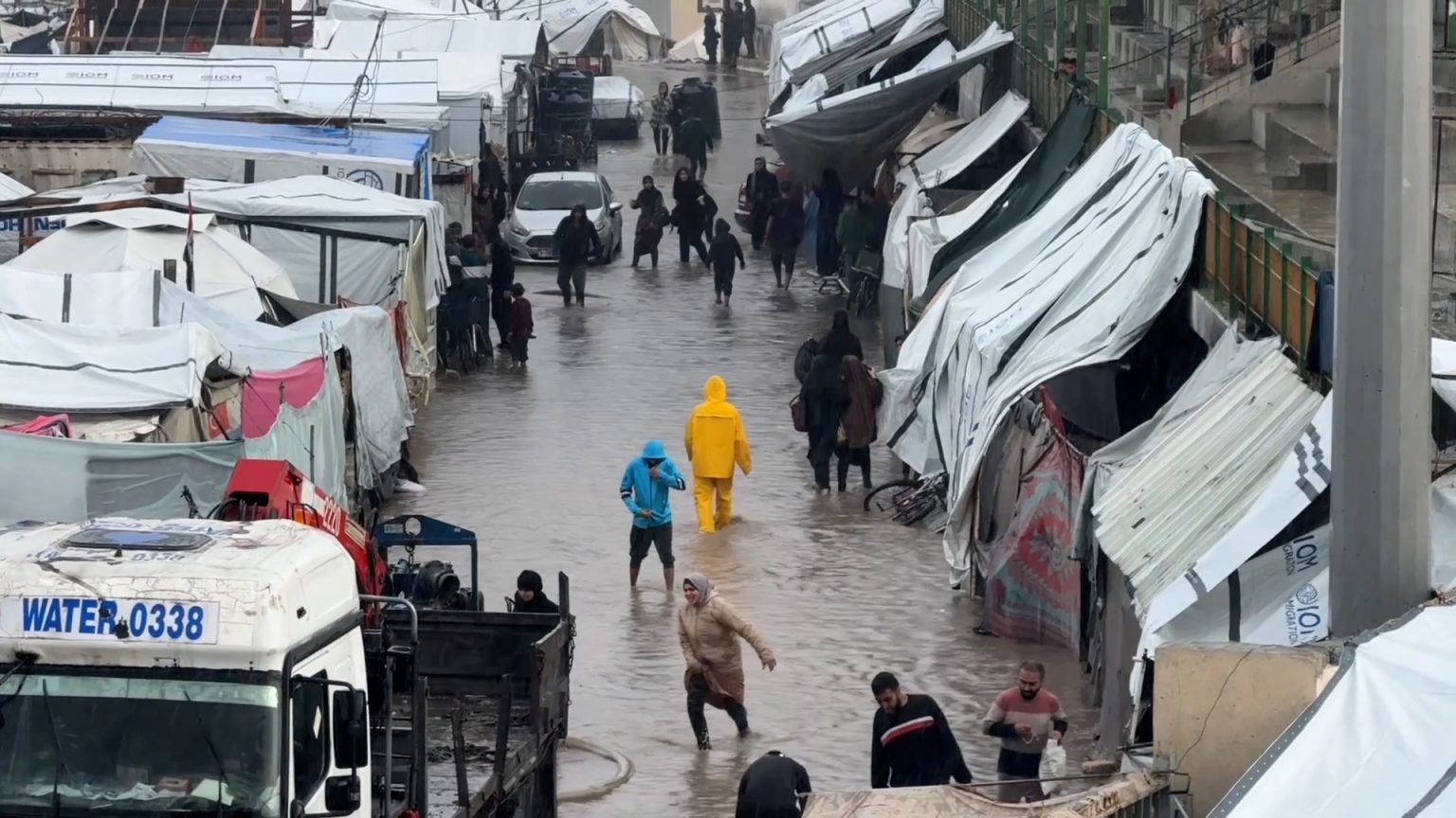 وفقًا للأمم المتحدة، لا يزال 1.3 مليون فلسطيني بلا مأوى لائق في غزة. حوالي 850 ألف شخص يعيشون في 761 موقع نزوح، غالبًا ما تكون في مناطق منخفضة شديدة التعرض للفيضانات وتفتقر إلى أبسط مقومات الحماية. فرق الدفاع المدني أفادت بغرق خيام بالكامل، واضطرار عائلات إلى قضاء الليل واقفة أو في الخارج لعدم وجود بدائل. ميرفات، وهي أم لطفلين، قالت: “لا يوجد شيء، ولا حتى جدار نتكئ عليه”.