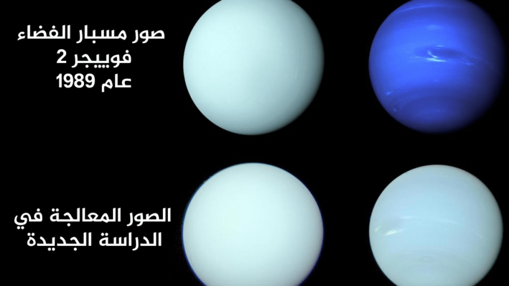 وتمكن فريق بحثي في فيزياء الكواكب في جامعة أكسفورد، من إجراء تحليل شامل بمعايرة الصور الملونة المُركبة التي التقطها مسبار الفضاء فوييغر 2، مع دمج بيانات من تلسكوب هابل الفضائي والتلسكوب العملاق التابع للمرصد الأوروبي الجنوبي. وتوفر هذه البيانات المنقحة صورا أكثر واقعية لألوان كوكب نبتون، تماما كما ينبغي أن تراه العين المجرّدة.