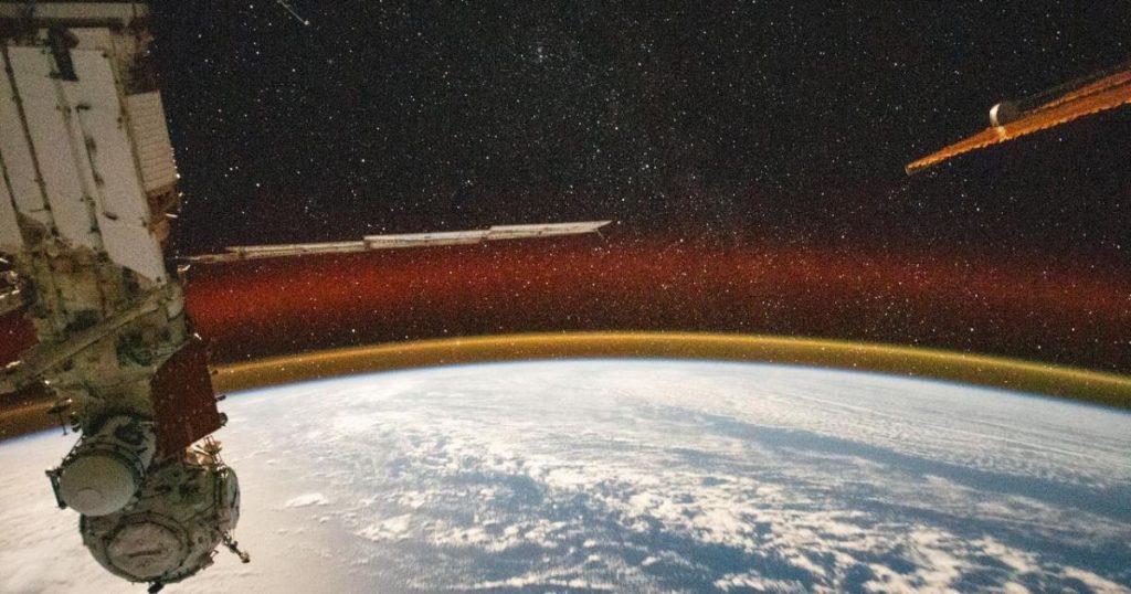 في صورة ساحرة نشرت بواسطة محطة الفضاء الدولية، يظهر توهج ذهبي مشع يُعرف باسم التوهج الليلي أو الوهج الجوي الناتج عن تفاعل ضوء الشمس مع ذرات وجزيئات الغلاف الجوي. ويظهر في الصورة التي شاركتها وكالة الفضاء “ناسا” الشهر الماضي يناير/كانون الثاني، قوس ذهبي مضيء يطوّق الأرض، ويحيطه شريط بني محمرّ على خلفية السماء المرصعة بالنجوم.
