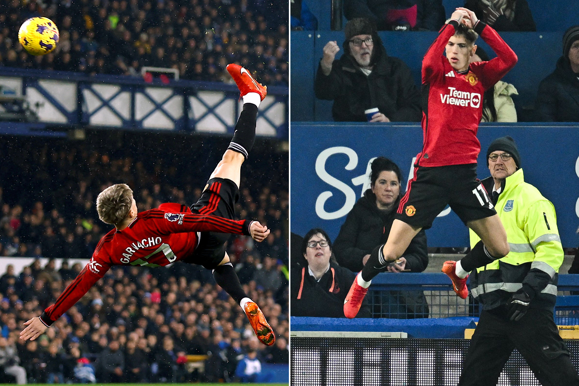 وسجل اللاعب البالغ عمره 19 عاما هدفا مذهلا من ركلة خلفية في الدقيقة الثالثة ليقود يونايتد للفوز 3-صفر على مضيفه إيفرتون في “غوديسون بارك” عندما قابل تمريرة عرضية من البرتغالي ديوغو دالوت بتسديدة خلفية قوية سكنت الزاوية اليمنى العليا لمرمى الحارس جوردان بيكفورد، لتبدأ بعدها رحلة المقارنات مع نجوم عالميين.