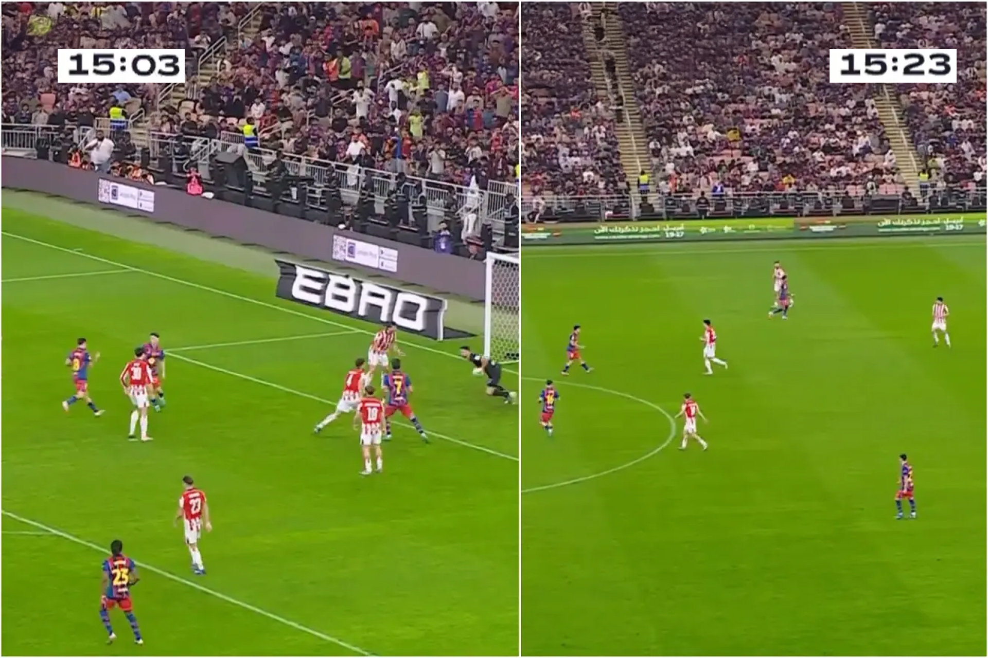 أشعلت مباراة نصف نهائي كأس السوبر الإسباني بين برشلونة وأتلتيك بلباو فتيل الجدل حول تطبيق قاعدة الثماني ثواني. في الدقيقة 15، وبعد تصديه لتسديدة من بيدري، حافظ حارس بلباو أوناي سيمون على الكرة لمدة تقدر بـ 20 ثانية، دون أن يتدخل الحكم لإيقاف اللعب أو احتساب ركلة ركنية.
