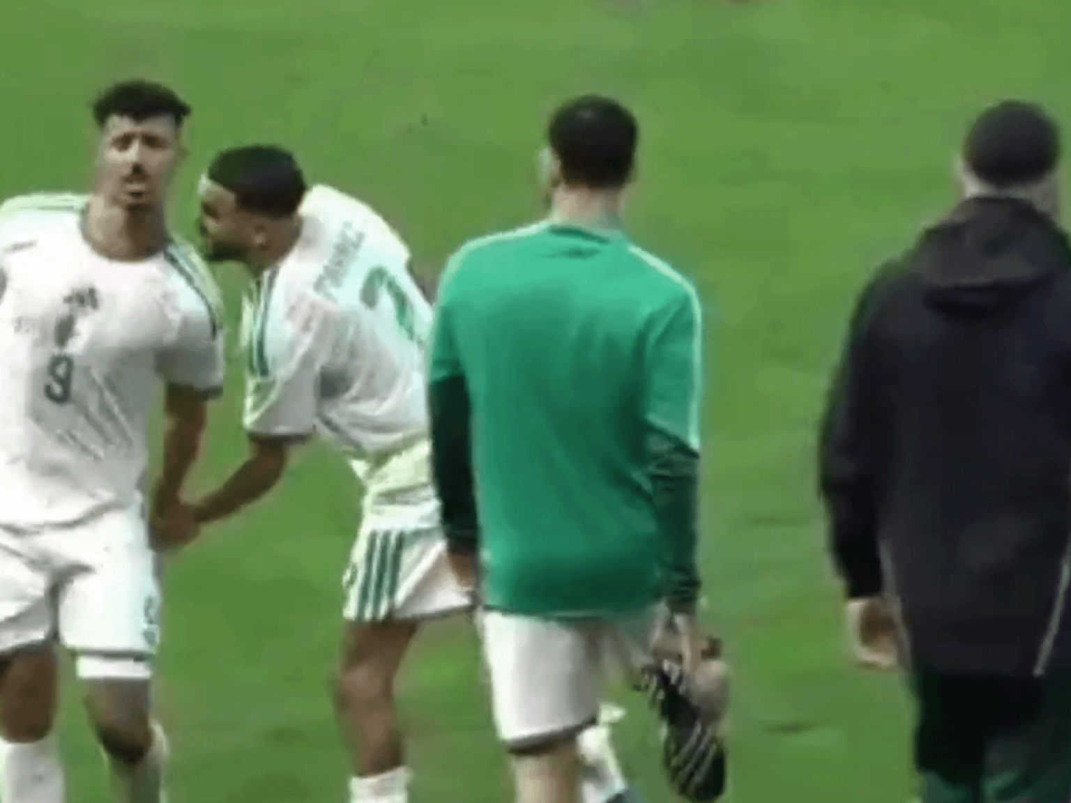 بعد نهاية المباراة، حاول رياض محرز مصافحة زميله بغداد بونجاح كعادة اللاعبين تعبيراً عن الروح الرياضية. لكن بونجاح فاجأ الجميع بتجاهل محاولة المصافحة، وغادر الملعب وهو يبدو غاضباً.