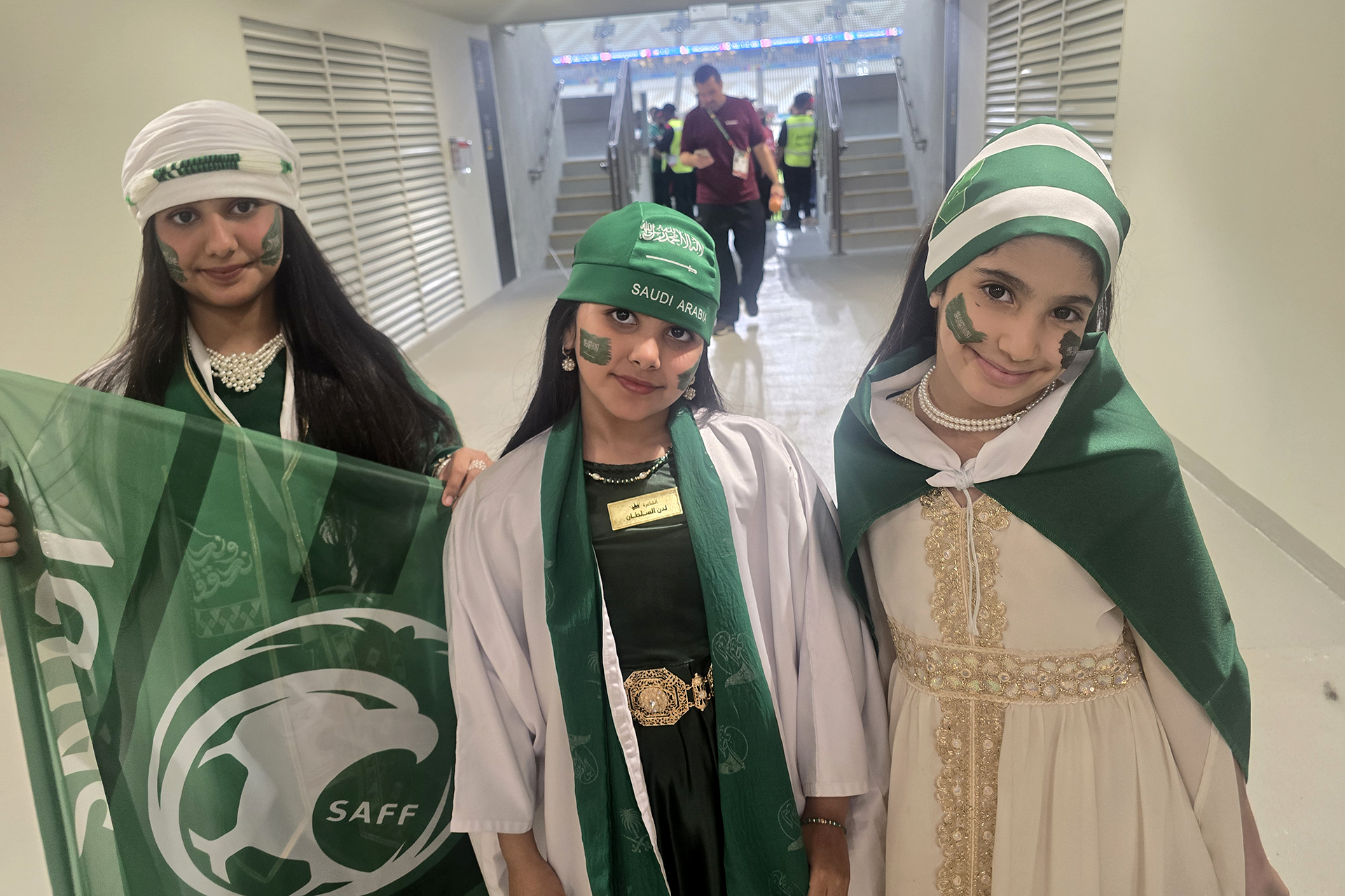 في خضم التدفق البشري الذي غمر ملعب لوسيل بعد صافرة النهاية، التقت الجزيرة نت بثلاث فتيات من منطقة القصيم، هنّ لدن ولجين (شقيقتها) ورحاب. ارتدين الأخضر، وزينّ رؤوسهن بالعلم السعودي، وتلألقت قلادات تحمل أسماءهن على أعناقهن. لكن ما يميزهن ليس فقط حماسهن للمنتخب، بل موهبتهن الشعرية الفذة.