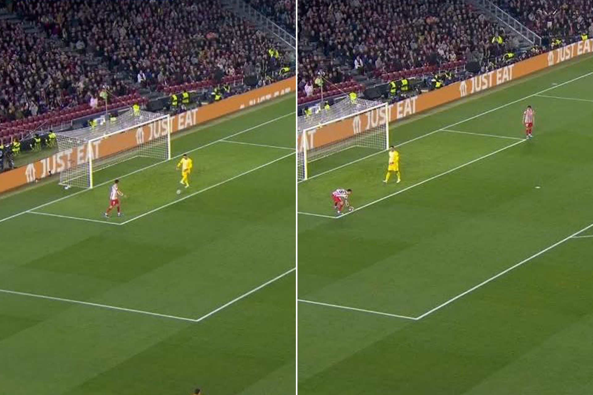 قدم برشلونة احتجاجاً رسمياً يوم الخميس الماضي، مطالباً بإعادة النظر في قرار الحكم المجري إستفان كوفاكس بعدم احتساب ركلة جزاء لصالحهم. الاحتجاج يتعلق بلحظة شهدت استئناف حارس مرمى أتلتيكو مدريد، خوان موسو، اللعب بركلة مرمى، ثم تمرير الكرة لزميله مارك بوبيل الذي لمسها بيده داخل منطقة الجزاء قبل إعادتها للحارس مرة أخرى.