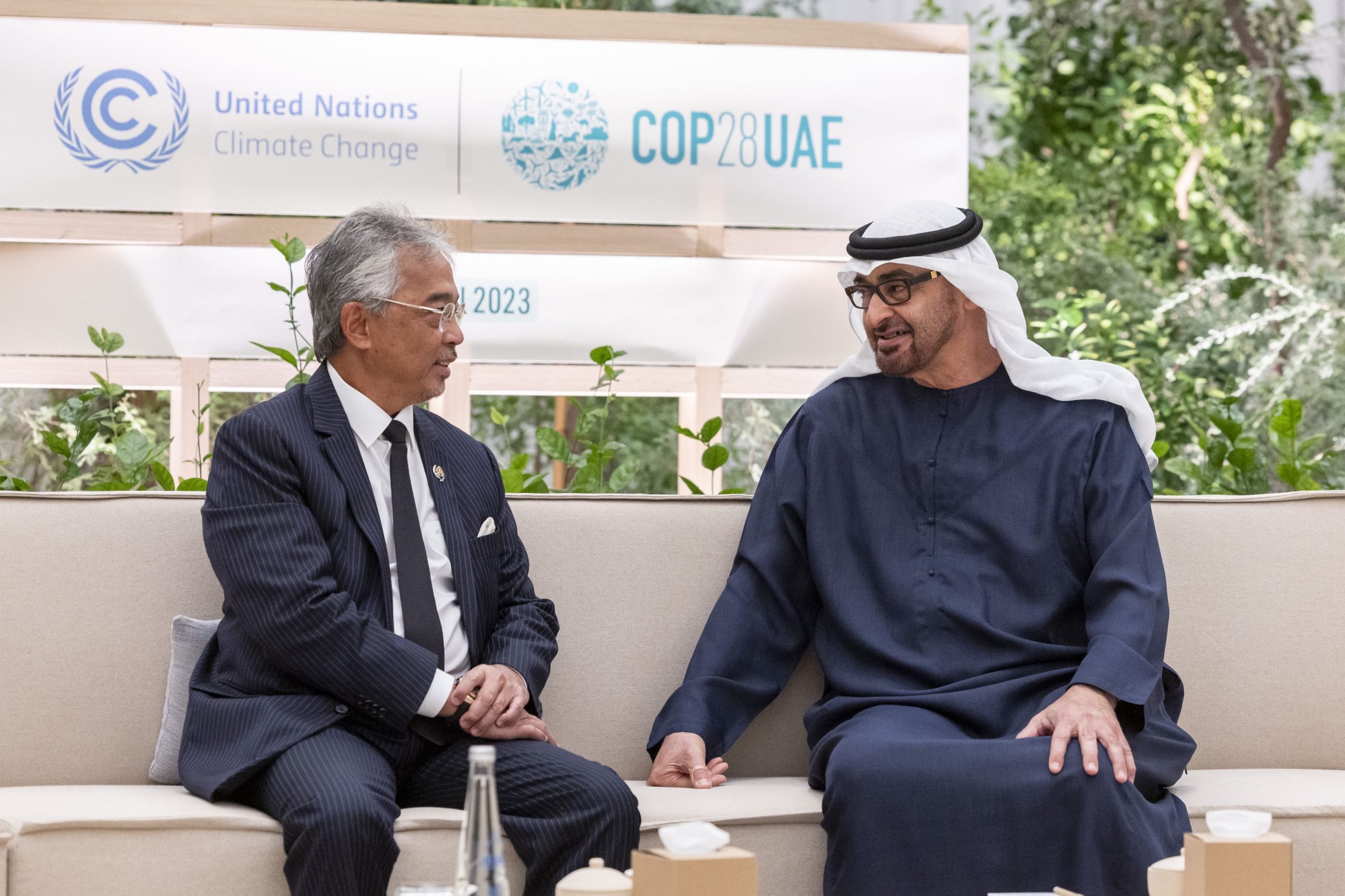 استقبل صاحب السمو الشيخ محمد بن زايد آل نهيان رئيس الدولة “حفظه الله” عدداً من رؤساء الوفود المشاركين في مؤتمر الأطراف في اتفاقية الأمم المتحدة الإطارية بشأن تغير المناخ (كوب28) في مقر المؤتمر في مدينة إكسبو دبي.