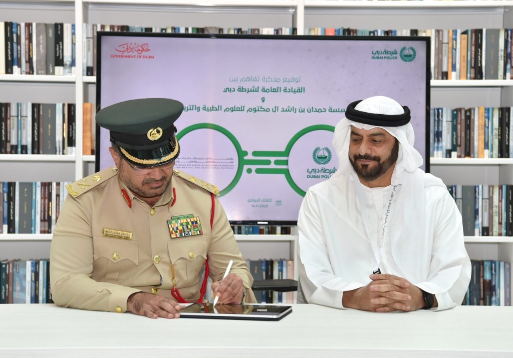 وقعت القيادة العامة لشرطة دبي ومؤسسة حمدان بن راشد آل مكتوم للعلوم الطبية والتربوية مذكرة تفاهم بهدف تعزيز التعاون وترسيخ علاقة الشراكة بينهما في مجال اكتشاف ورعاية الموهوبين بما يحقق الأهداف الاستراتيجية بين الطرفين.