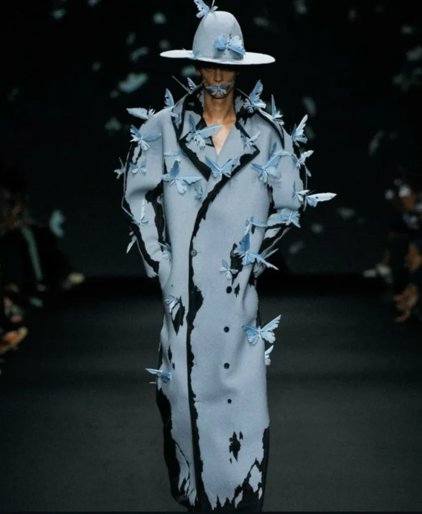 تتميز مجموعة روبرت وون الأخيرة بجرأة لا مثيل لها، حيث يتبنى المصمم فكرة “الجمال في العيب”. هذه الفلسفة ليست مجرد اتجاه عابر، بل هي تعبير عن رؤية أعمق ترى أن الكمال ممل، وأن العيوب هي التي تمنح الأشياء طابعها الخاص وشخصيتها المميزة. تظهر هذه الفلسفة بوضوح في استخدام تقنيات مبتكرة لخلق تأثيرات بصرية تبدو وكأنها ناتجة عن الزمن أو الاستخدام، مثل البقع والتمزقات المتعمدة والاحتراق الجزئي للأقمشة.