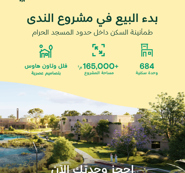 أعلنت الشركة الوطنية للإسكان (NHC) عن إطلاق مشروعها السكني الجديد “الندى” ضمن وجهة بوابة مكة العمرانية في العاصمة المقدسة. يمتد المشروع على مساحة 165 ألف متر مربع ويضم 684 وحدة سكنية متنوعة بين الفلل والتاون هاوس، مما يعكس التزام الشركة بتقديم خيارات سكنية عصرية تلبي احتياجات السوق المتنوعة.