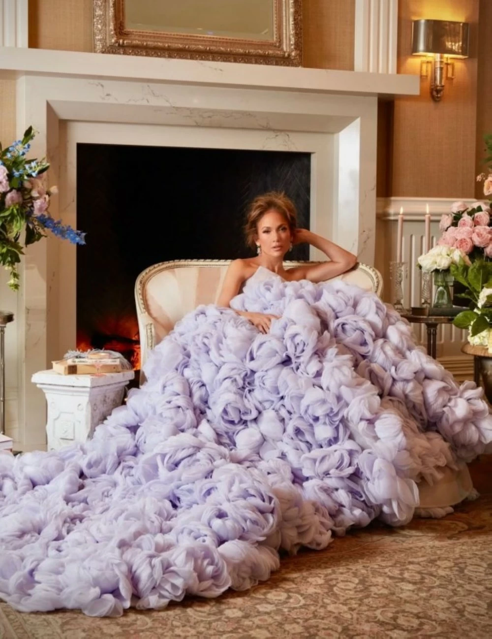 سحر اللون الليلكي والتطريزات الزهرية في إطلالة جينيفر لوبيز
