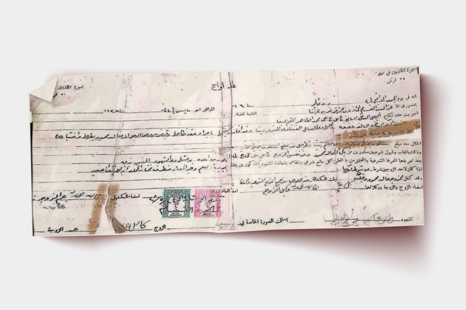مهر بلغ وقتها 100 جنيه فلسطيني، ومأذون هو شخصية تاريخية، ورجل وامرأة، صارا لاحقا بذرة لعائلة جابت العالم، يقول عمرو “مرت 4 سنوات على المنشور، إلا أنه مع تكرار الأحداث أعدت نشره، لكنني لم أتوقع أنه سوف يتنشر بهذه الطريقة، حيث آلاف المرات من المشاركات، وطلبات الإضافة، والتعليقات، وهو ما دفعني لسؤال أهلي في فلسطين لجمع كل الأوراق التي تتحدث عن تاريخنا هناك”.