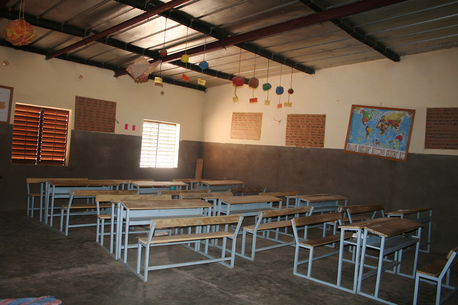 اجتمع رجال القرية ونساؤها معا لبناء المدرسة، وخلطوا الماء بالتربة، واستبدلوا العوارض الخرسانية بالحجر النِّي الأحمر، وبنوا جدرانا قوية جدا.