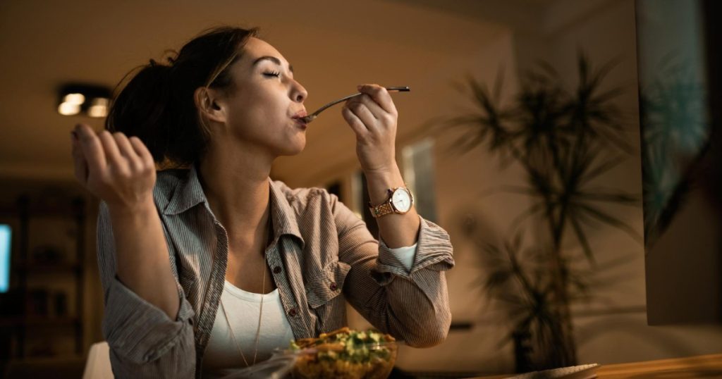 - التوقف مؤقتًا أثناء الوجبة: مراجعة الإحساس بالشبع قبل الاستمرار في الأكل.