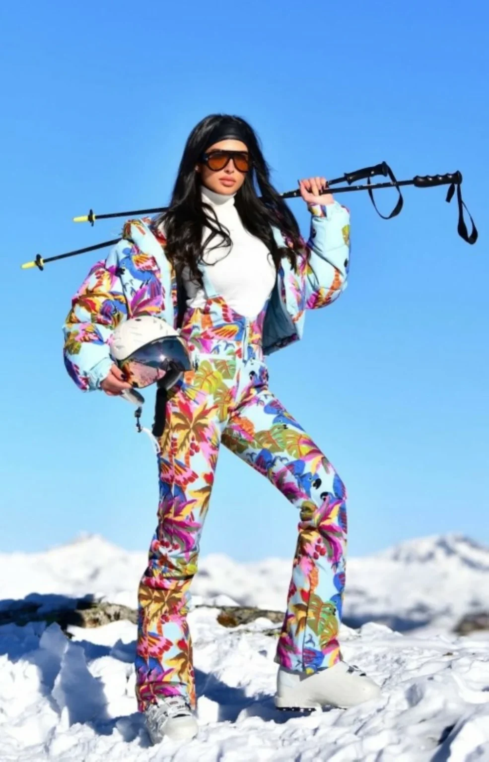 تميز الطقم بتناغم فريد بين الألوان الزاهية، مما أضفى على الإطلالة لمسة من المرح والانتعاش. لم تكتفِ لمى باختيار الألوان فحسب، بل اهتمت أيضًا بالقصات التي تبرز جمال قوامها وتمنحها حرية الحركة أثناء التزلج. لقد أظهرت الإطلالة أن الموضة يمكن أن تكون عملية ومريحة في الوقت نفسه، دون التضحية بالأناقة والجاذبية.