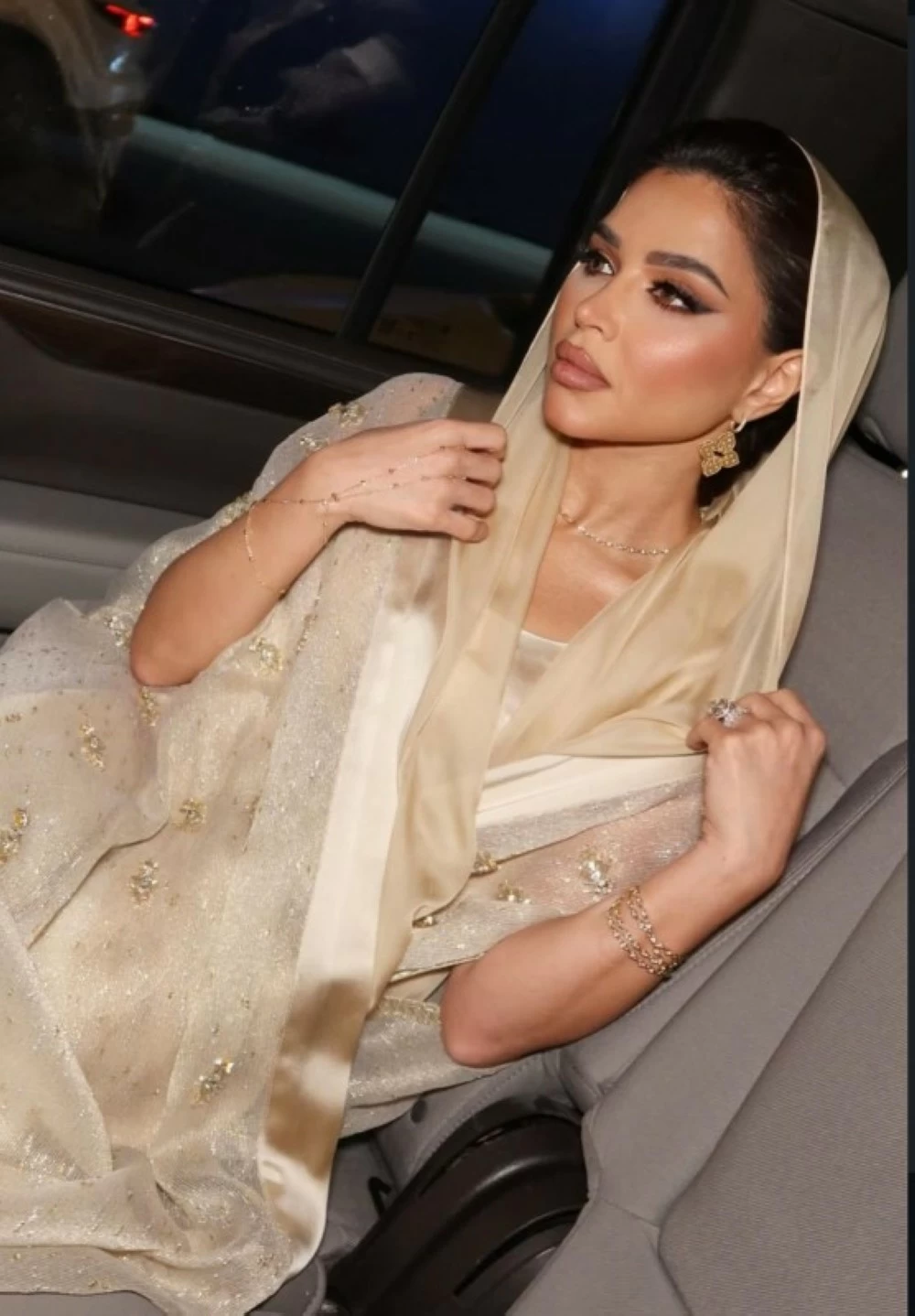 العباية لم تكن مجرد لون ذهبي جذاب، بل تميزت بتفاصيل دقيقة عززت من جمالها وفخامتها. القماش المنسدل، ذو اللمعة الخافتة، أضفى حركة وانسيابية على الإطلالة، بينما وزعت التطريزات بشكل مدروس بعناية، مما أضاف بعداً فنياً للقطعة. هذا الاهتمام بالتفاصيل هو ما يميز إطلالات نهى نبيل دائماً، ويجعلها مصدر إلهام للعديد من النساء.