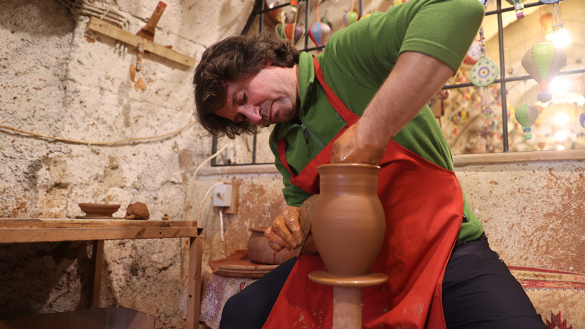 بدأ طوبوز (50 عاما)، العمل في الثامنة من عمره بالصلصال في الورشة التي تحمل اسم جده، ولا يزال صانع الفخار الشهير في المنطقة يواصل المهنة التي ورثها عن أجداده، ويعرض أعماله الفنية في المكان التاريخي.