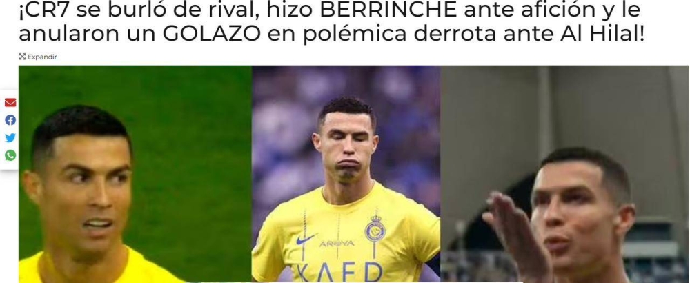 وكتبت صحيفة «ماركا» الإسبانية: «رونالدو وفريقه يتلقيان الخسارة من الهلال في مباراة حاسمة على التمسك بالقمة، وهذه الليلة لن تُنسى للنجم البرتغالي بعد الخسارة بنتيجة 3-0 أمام المنافس التقليدي». وأضافت: «النجم الصربي المحترف في الفريق الهلالي ميتروفيتش كانت ليلته جميلة بعد أن سجل هدفين في وقت مهم من المباراة، الهلال حالياً الأكثر تماسكاً وتميزاً بوصوله إلى النقطة 41 نقطة».