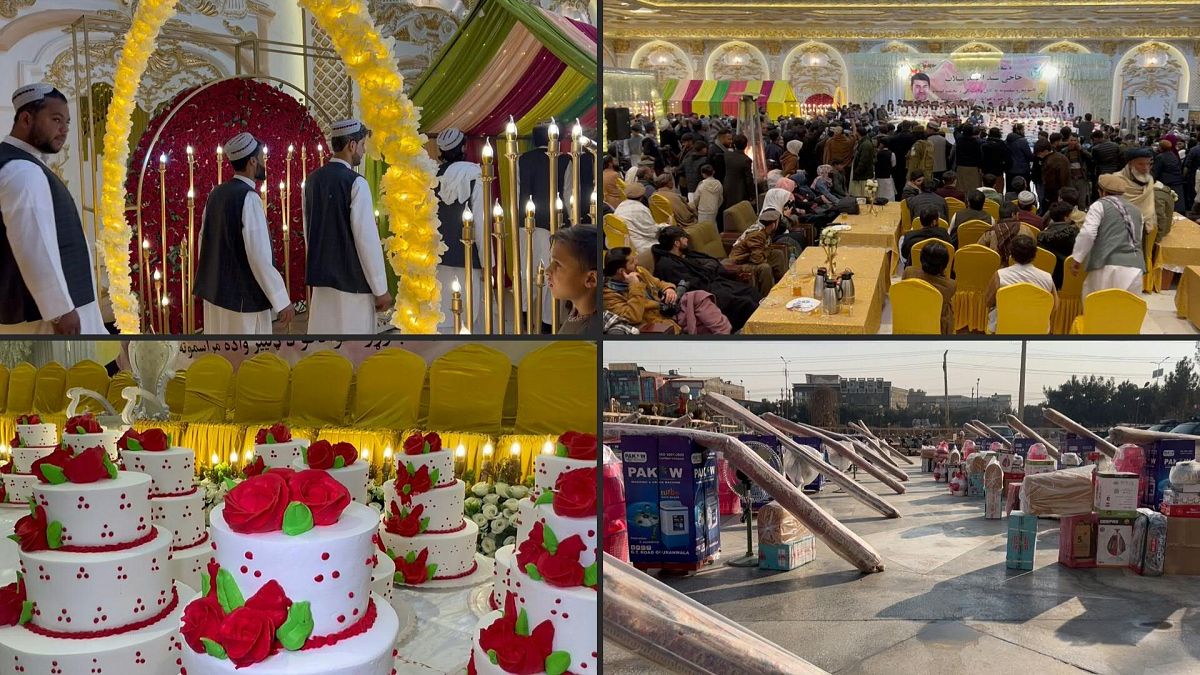 ويمتزج الطابع المهيب لقاعات الزفاف الكبيرة في كابول مع أجواء التقشف الجديدة لهذه الاحتفالات الجماعية، في الدولة الواقعة في آسيا الوسطى والتي تعيش في خضم الركود الاقتصادي.