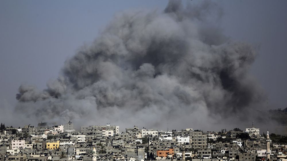 يظهر الفيديو سحابة ضخمة من الدخان إثر استهداف طائرات إسرائيلية منازل فلسطينيين في خان يونس الواقعة في جنوب القطاع وذلك بعد ساعات من انتهاء الهدنة الإنسانية والتي استمرت أسبوعا.