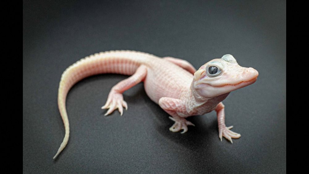 التماسيح الليوسية تمتلك اختلافات نادرة، ولها عيون وردية وفقدان كامل لصباغ الجلد.