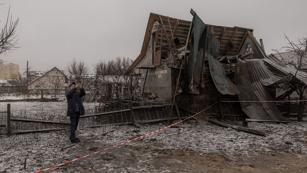 تظهر مشاهد مصورة أحد المباني المتضررة في منطقة دارنيتسكي في جنوب شرق العاصمة الأوكرانية كييف نتيجة سقوط شظايا صواريخ صباح الاثنين.