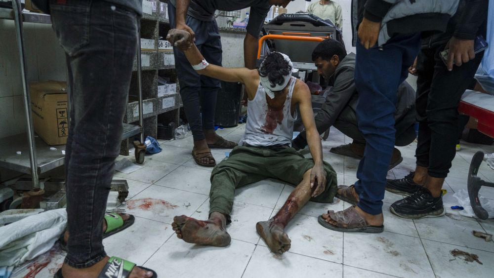 فوضى بمستشفيات جنوب قطاع غزة حيث يعالج الجرحى على الأرض في الممرات الملطخة بالدماء بينما يحمل لهم أقاربهم أكياس المصل وسط تجمهر مواطنين وصلوا للبحث عن أحبائهم أو لإخراج جثامين وضعت في أكياس بلاستيكية.